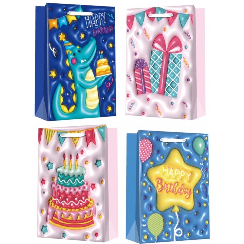 Пакет паперовий LARGE Birthday 26x12,7x32,4, 210gsm, асорті